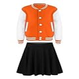 Jeatha Jaqueta Universitária Raglã Manga Longa Infantil Meninas 2 Peças Com Conjunto De Saia Atlética Evasê Uniforme De Equipe Esportiva Laranja 5 6x