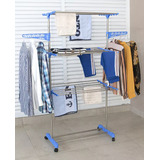 Varal Retrátil Articulado Dobrável Vertical 3 Andares Azul