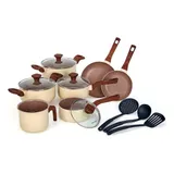 Conjunto De Panelas Antiaderente 10 Peças Teflon Linha Coffee Cappuccino Tampa De Vidro