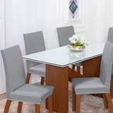 Kit Capa De Cadeira Jantar Elástico 6 Lugares Pronta Cor Cinza Claro