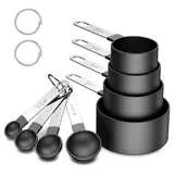 Medidor Culinário Inox Colher Copo Xícara Cozinha Cor Preto 8 Peças