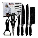 Zepter Jogo De Facas 6 Peças Tesoura Cozinha Aço Inox Antiaderente Cor Preto