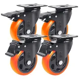 Kit 4 Rodinha Rodízio Roda Reforçada Giratória 3 Polegadas Cor Das Rodas Laranja Conjunto Com Travas