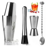 Coqueteleira Socador Dosador Inox 750ml Drinks 4 Itens