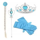 Kit Frozen Elsa Acessórios Com Trança Luvas Coroa E Varinha Cor Azul celeste