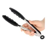 Pinça Pegador Culinário Silicone 25 Cm Multiuso Inox Fritura Cor Preto