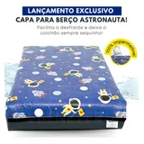 Capa Protetora De Colchão Astronauta Impermeável Berço Mini Cama Antialérgico