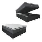 Cama Box Baú Casal Queen Colchão Gazin Maximus Molas Ensacadas 158x198x65cm Cinza Preto Suporta Até 120kg Por Pessoa