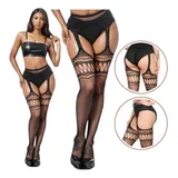 Conjunto Cinta Liga Sexy Sensual Com Calcinha Meia 7 8