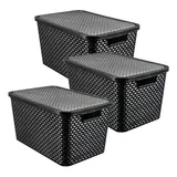 Kit 3 Caixas Organizadoras Rattan 20 Litros Com Tampa Preta