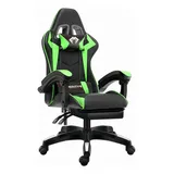 Cadeira Gamer Ergonômica Preta Verde Estofado Couro Sintético