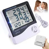 Termo Higrômetro Digital Sensor Externo Interno Medidor De Temperatura Umidade Ar E Relógio Digital Marca Casasonho
