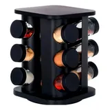 Porta Temperos E Condimentos Giratório 12 Peças Vidro Cor Preto Belakasa Bk5716