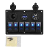 Painel Elétrico Led Usb Voltímetro 6 Chaves Náutico Lancha