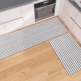 Kit Tapete Cozinha 130x45 Passadeira 2 Peças Antiderrapante Comprimento 1 3 M Cor Branco Desenho Do Tecido Listras Preto Largura 45 Cm