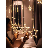 Cascata Estrela E Lua 138 Led Branco Quente 110v