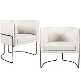 Kit 02 Poltronas Decorativas Fixa Base De Aço Choco Betina D02 Linho Creme A 48 Lyam Decor